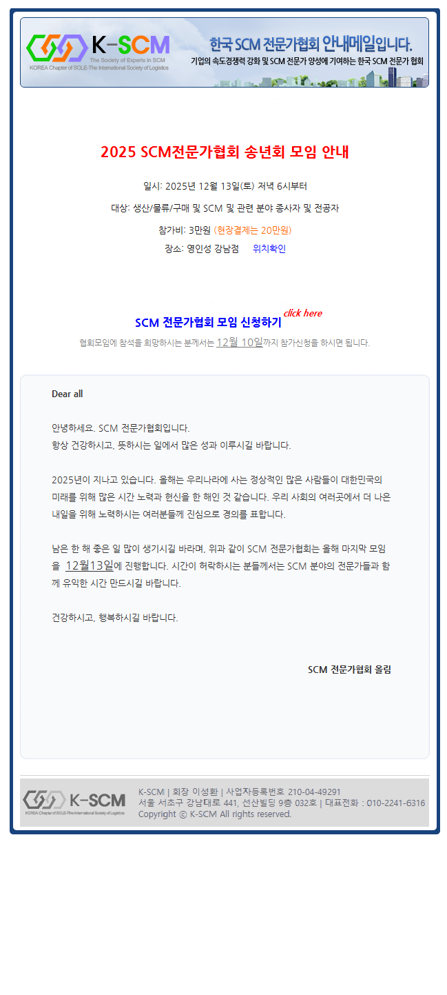 [SCM] 2025³â SCM Àü¹®°¡Çùȸ ¼Û³â¸ðÀÎ ¾È³».
